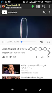 هى تحميل تطبيق tubmate الشهير للاندرويد للتحميل من اليوتيوب بكل سهولة وبمختلف الجودات , تطبيق توب ميت حصل على الملايين من المستخدمين حول على العالم لما يتميز به من مميزات اخر غير موجودة فى التطبيقات والبرامج الاخرى ولكنه للاسف غير متوفر فى متجر جوجل ولكن تستطيع تحميله من هنا tubmate , بعد تحميل التطبيق وتثبيته قم بفتحه ثم ابحث عن الفيديو الذى تريد تحميله سوف تجد فى الاعلى سهم الى الاسفل لونه اخضر تقريبا اضغط عليه ثم اختار الجودة التى تريدها وسوف يبدا التحميل تلقائي وكذلك تستطيع التحميل من اليوتيوب بصيغة mp3 ,